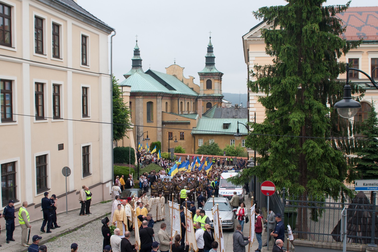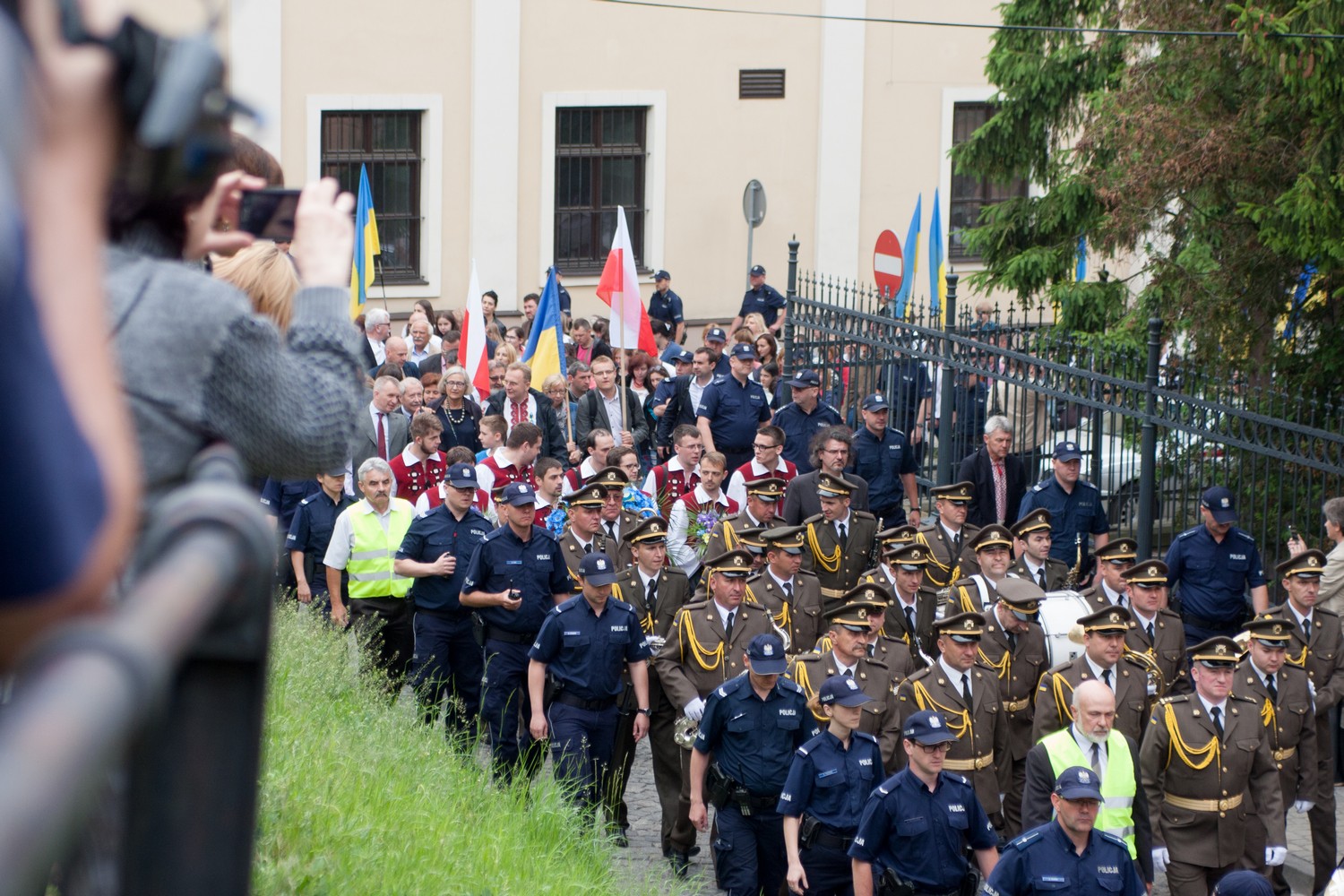 Опісля процесія з релігійними фанами, українськими та польськими прапорами, у супроводі військового оркестру Національної академії сухопутних військ імені гетьмана Петра Сагайдачного вервечкою рушила з центру міста в сторону цвинтаря на окраїні.