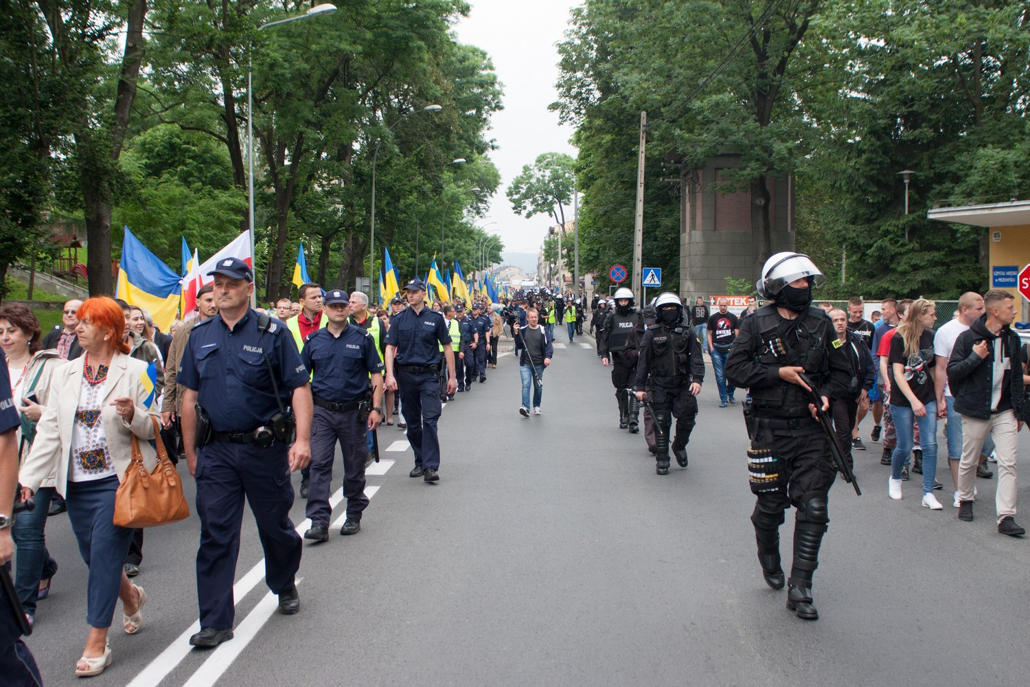 Колону з двох-трьох тисяч осіб оточила кільцем поліція, частина – у повній амуніції. Під час ходи було зафіксовано кілька плакатів про те, що «ОУН і УПА відповідальні за геноцид поляків на Волині» та про заборону «пропагування бандеризму».