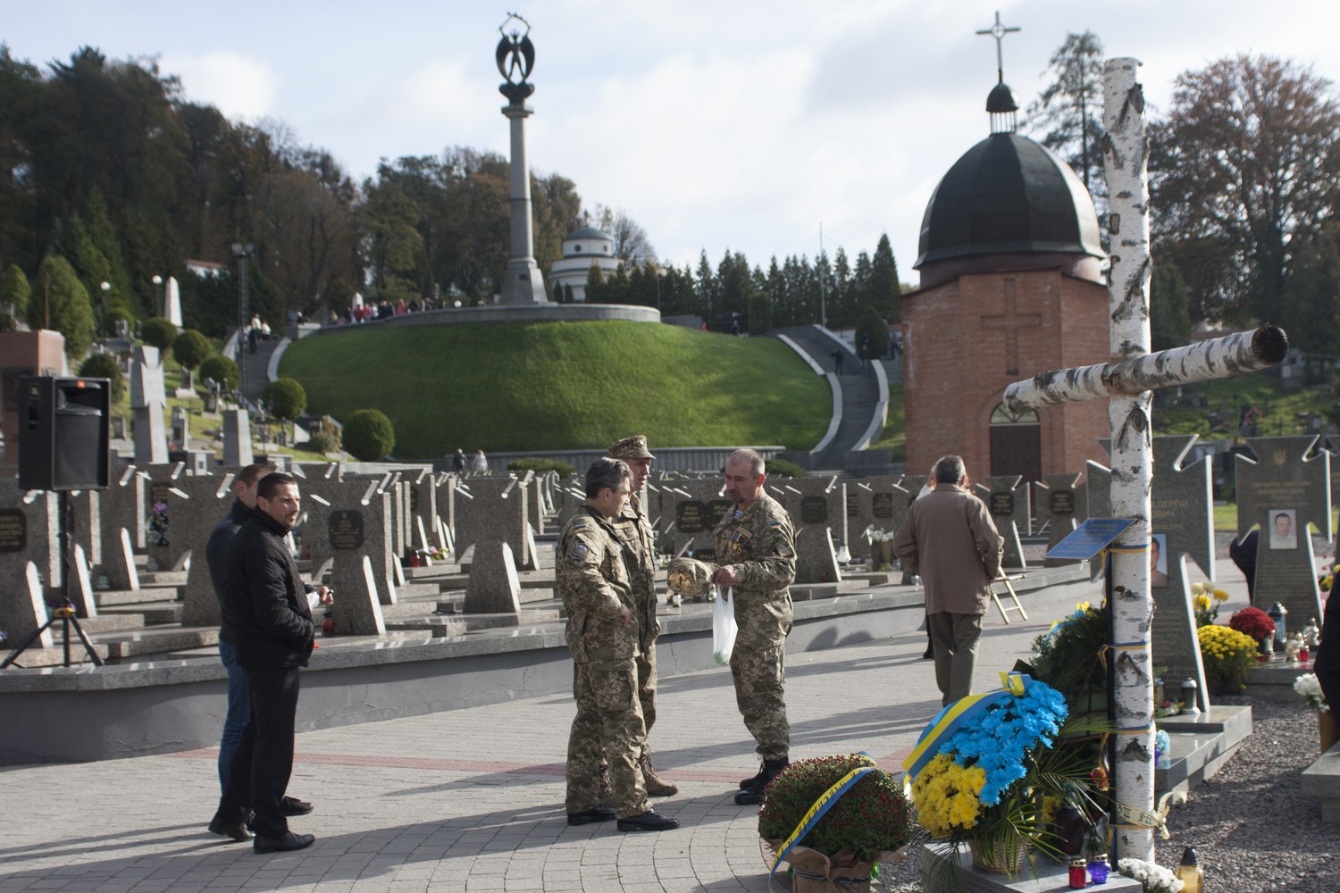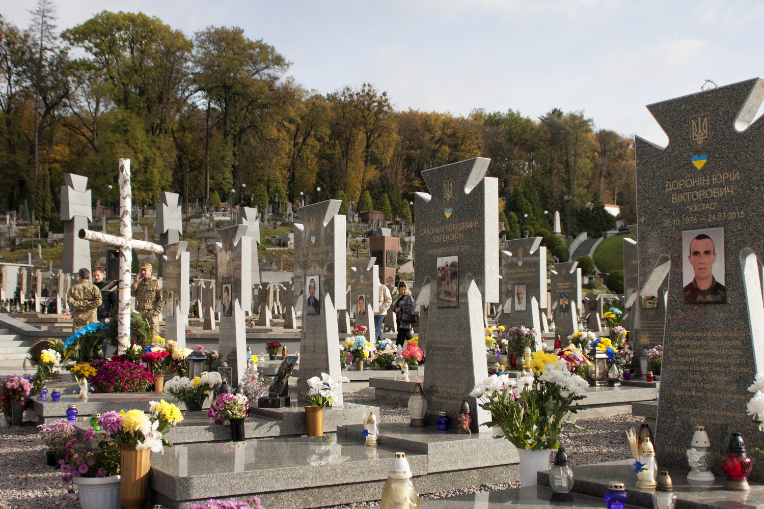 Люди поклали квіти та запалили лампадки на могилах борців за незалежність України на полі почесних поховань № 67 Личаківського кладовища. Також вшанували пам’ять загиблих у війні на сході України.