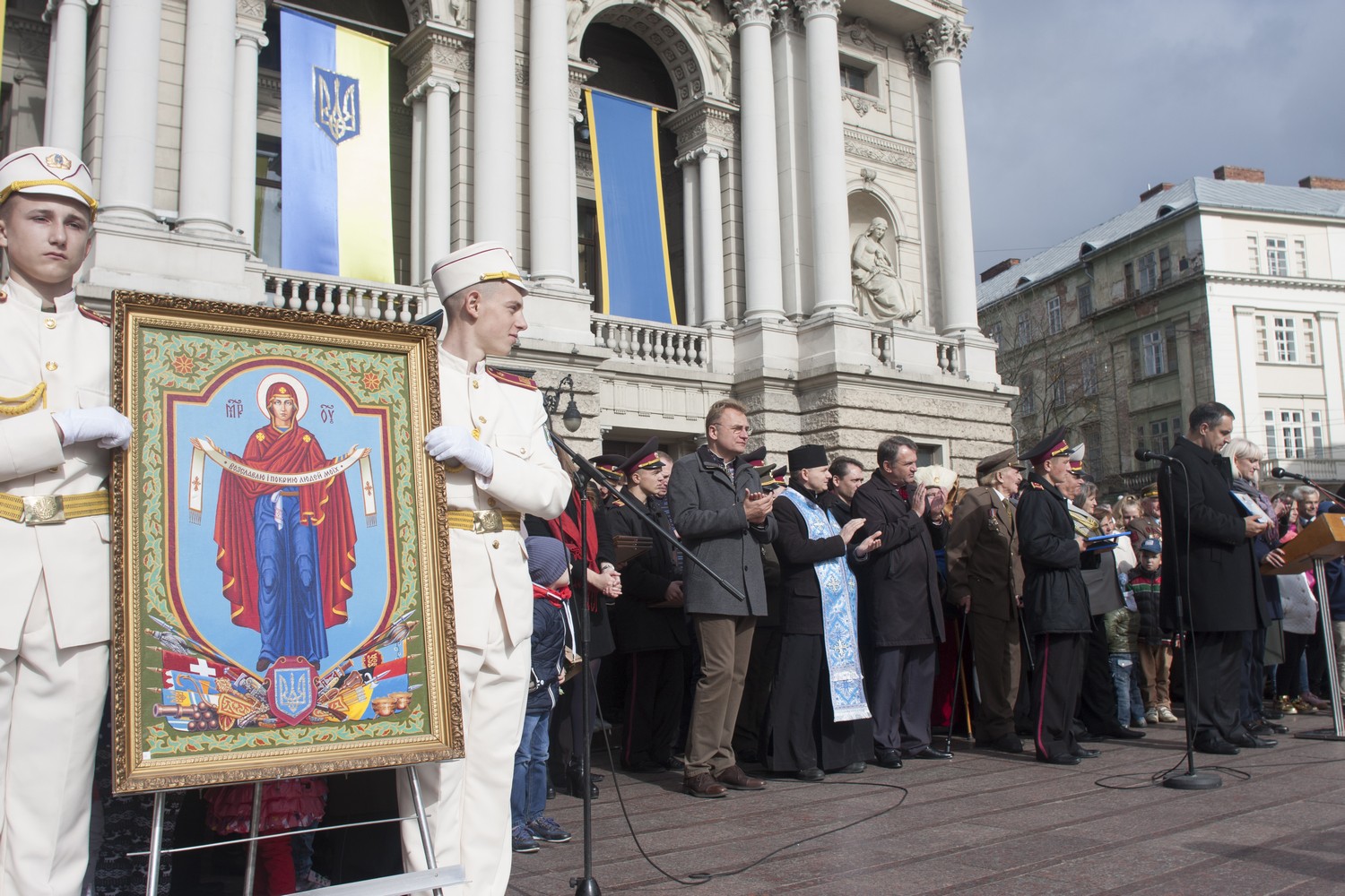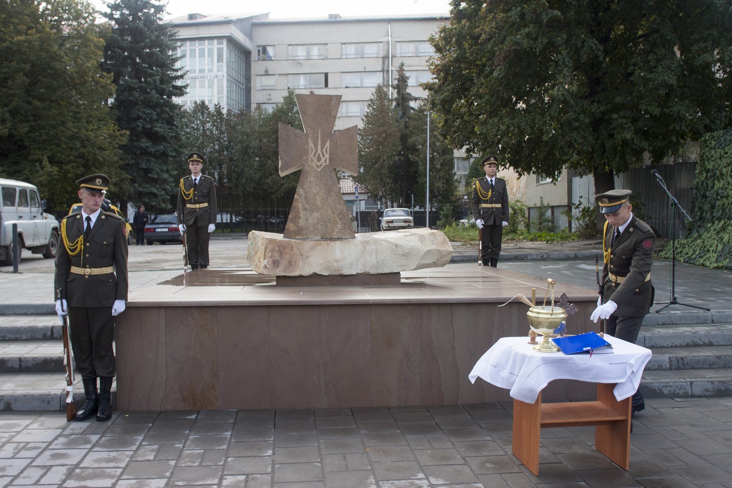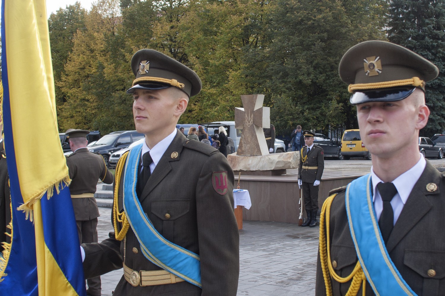 Біля Оперного театру склали присягу курсанти ліцею ім. Героїв Крут. А також відкрили пам’ятник “Воїнам, що віддали свої життя за Україну” біля військового храму Стрітення Господнього (вул. Батуринська, 1).