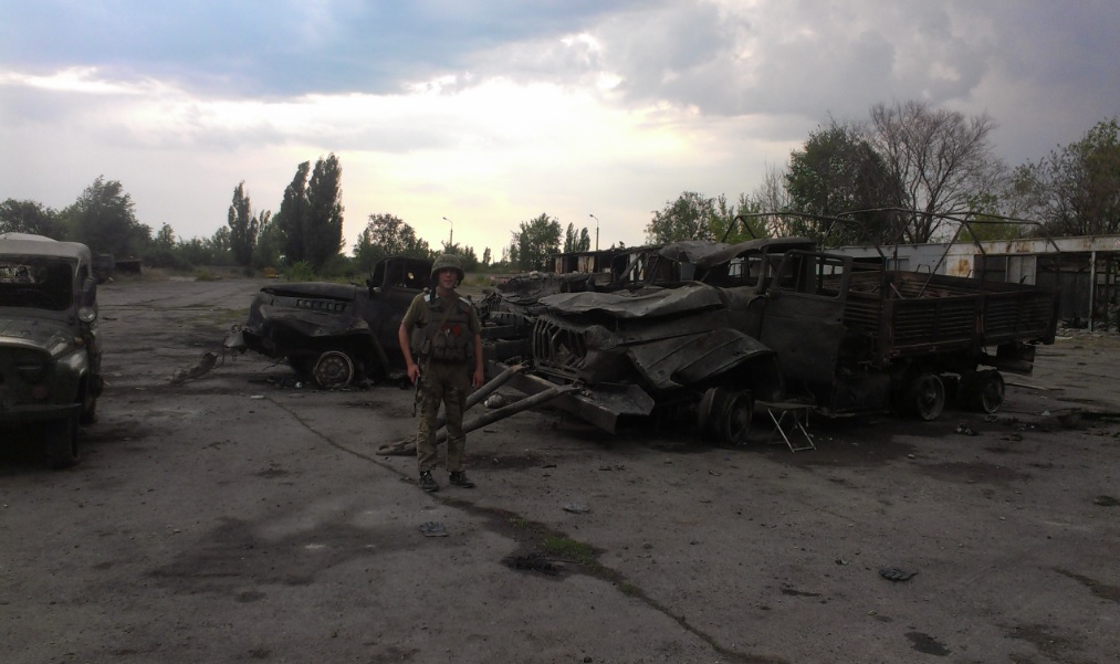 – Довго на відповідь від нас ворог не чекав. Артилерист Володимир Любавін розвернув просто в рекордний час підлеглий підрозділ і вони одразу точно вдарила по бойовиках, які, напевно, не чекали такої теплої відповіді. Колона української техніки просунулась аж до крайнього перед летовищем мосту і тут з обох сторін найманці почали “лупити” по нам з РПГ, СПГ і стрілецької зброї. А коли ми вв’язалися у бій, ще долучився міномет. Потрібно було рухатися, але голову колону паралізував танк. Екіпаж бронемашини через загибель товариша безжально бив у ворога, не даючи нам дорогу. Полковник Андрій Ковальчук переконав їх продовжити рух. Він сам сів на перший БТР і повів людей на прорив на летовище. Це далося дорогою ціною. Підбили наш бронетранспортер. На щастя екіпаж вчасно покинув машину, потім командир Ковальчук отримав важке поранення. А граната з СПГ влучила у кузов вантажного автомобіля, де була обслуга гармати. Вічна пам’ять героям… – розповідає офіцер.